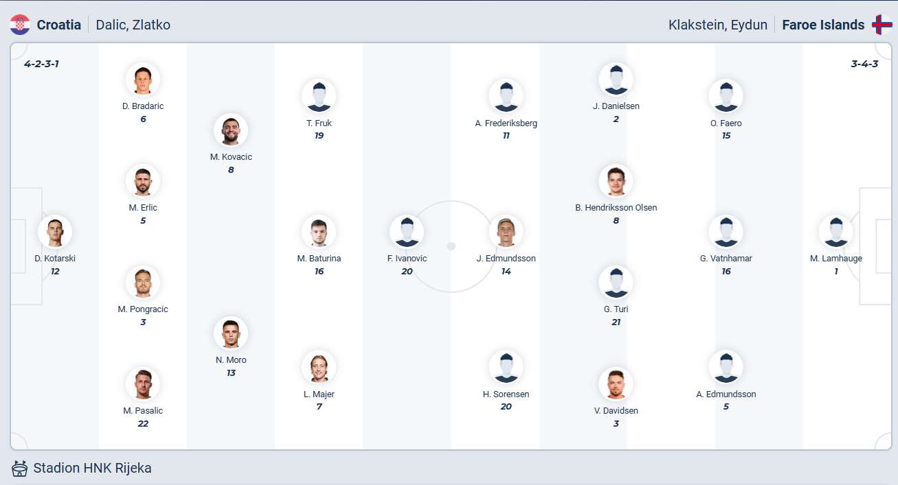 Croatia luôn dự các vòng chung kết World Cup và Euro từ khi họ trở thành một quốc gia độc lập, rõ ràng đây là đội bóng khá của khu vực châu Âu. Ở vòng loại World Cup lần này các cầu thủ Croatia cũng đang chơi rất thành công khi có 16 điểm sau 6 trận đã đấu, họ chỉ cần 1 điểm trong 2 trận còn lại để chắc chắn đứng đầu bảng. Chắc chắn Croatia muốn hiện thực mục tiêu đó ngay ở lượt đấu sắp tới nên chiến thắng là mục tiêu đội chủ nhà đặt ra. Faroe dù yếu hơn khá nhiều nhưng có tinh thần tốt nên rất có thể Croatia chỉ có thể thắng với cách biệt tối thiểu.