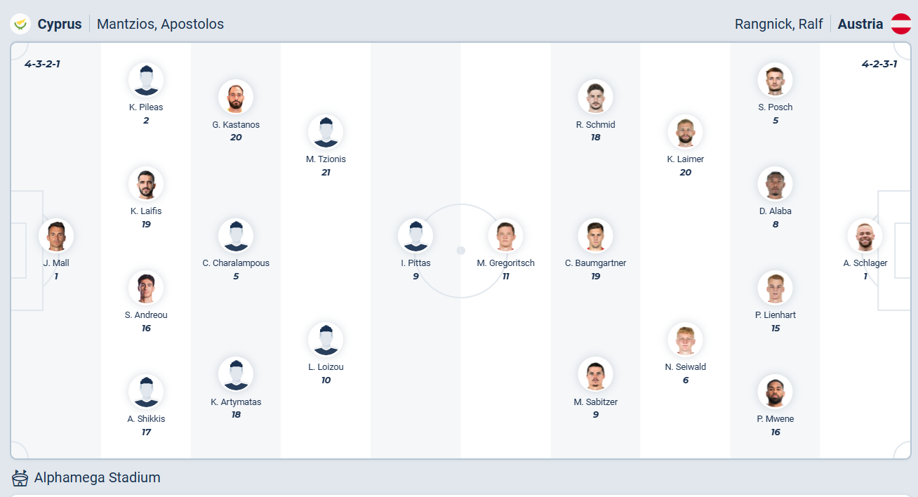 Nhận định soi kèo Síp vs Áo lúc 00h00 ngày 16/11/2025